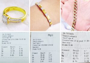 ทำการตรวจสอบเปอร์เซ็นต์และชนิดของทองหรือเป็นโลหะชนิดอื่นด้วยเครื่องตรวจสอบเฉพาะทาง เพื่อความแม่นยำ